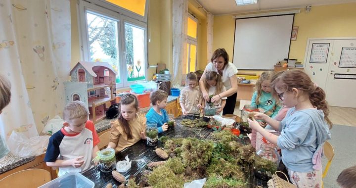 Dzień Lasu w przedszkolu to doskonała okazja, aby przybliżyć dzieciom znaczenie drzew i ekosystemów leśnych w codziennym życiu. Las to nie tylko miejsce pełne tajemnic i przygód, ale także dom dla wielu zwierząt oraz roślin, które odgrywają kluczową rolę w przyrodzie. Poprzez zabawy, rozmowy, zajęcia edukacyjne przedszkolaki mogły dowiedzieć się, dlaczego warto dbać o lasy i jak możemy je chronić oraz jakie skarby kryje leśna przyroda. Ostatniego dnia marca, przy okazji święta Lasu, zorganizowane zostały warsztaty ekologiczne podczas których tworzyliśmy „Las w szkle”. Niezwykłe doznania sensoryczne rozbudziły zmysły dzieci i wyobraźnię artystyczną. Powstałe prace będą je cieszyć na długo w ich domach.