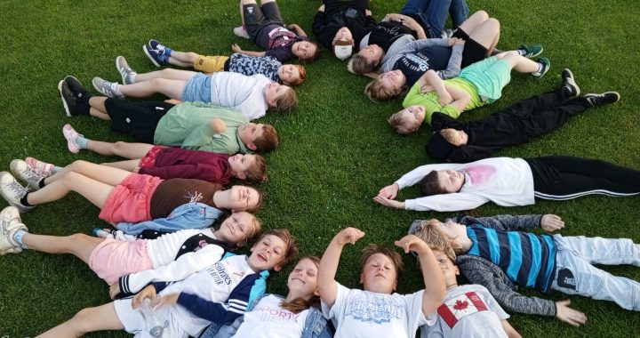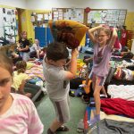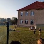 „13 wszystko zdarzyć się może…”- nawet nocowanie w szkole. 13 czerwca klasa 2 i 3 wraz ze swoimi nauczycielami postanowili przenocować w szkole. Umówiliśmy się na popołudnie, żeby przed spaniem jeszcze się trochę pobawić i zjeść na podwieczorek pyszne gofry, przygotowane przez mamy z naszych klas i kolację w formie pieczonych na ognisku kiełbas i pizzy. Atrakcji była cała noc: bawiliśmy się na podwórku w chowanego, w gąski do domu, w berka, skakanie przez przeszkody, graliśmy w klasy, pajaca, w siatkówkę plażową i oczywiście tradycyjnie w piłkę nożną, puszczaliśmy bańki mydlane. Po kolacji wybraliśmy się na długi spacer na lokalne boisko piłkarskie, a kiedy było już ciemno, poszliśmy na nocną wyprawę z latarkami w poszukiwaniu przygód.  Starczyło nam już tylko sił na szybkie mycie i poszliśmy spać. Na dobranoc klasa 2 wysłuchała bajki, a klasa 3 obejrzała sobie film dla dzieci, nie wszyscy dotrwali do końca historii. Zabawa i czas wspólnie spędzony był niesamowity, radosny i pełen pozytywnej energii.
