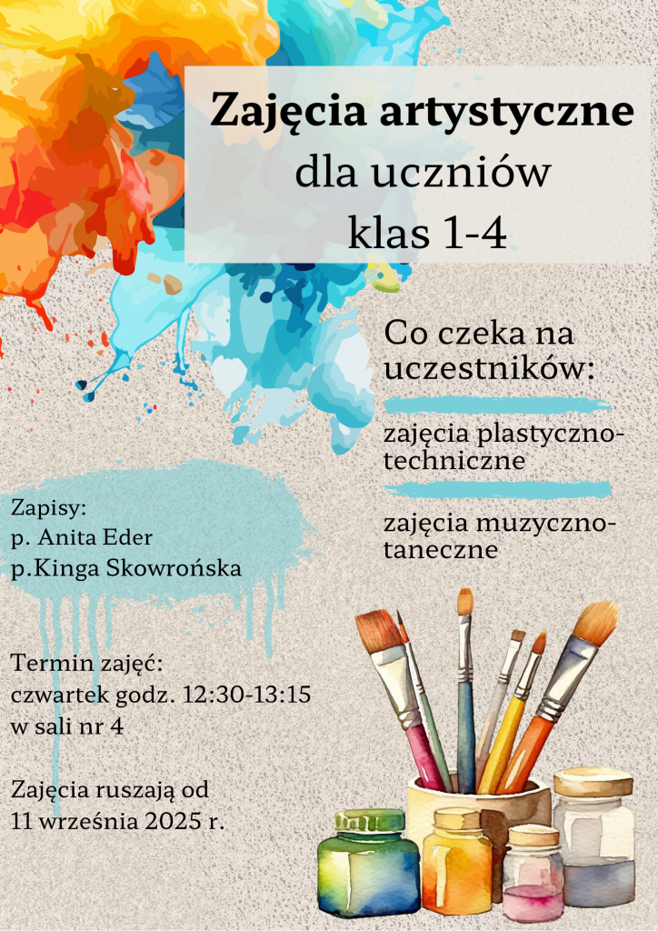 Zajęcia artystyczne – zaproszenie Opublikowano 1 września 20251 września 2025 Opublikowano w Szkoła Podstawowa.