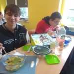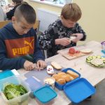 Uczniowie w trakcie przygotowywania posiłków mieli okazję poznać zasady zdrowego odżywiania, takie jak: znaczenie błonnika, rola witamin i minerałów w organizmie, a także jak łączyć produkty w sposób, który dostarczy niezbędnych składników odżywczych.