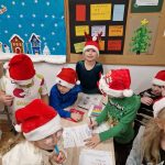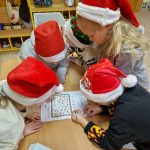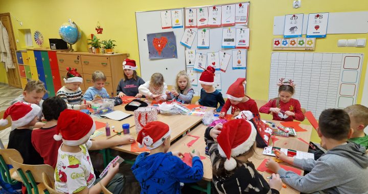 W czwartkowy wieczór nasza szkoła zamieniła się w escape room. Pierwszoklasiści wzięli udział w grze zagadkowej „Na ratunek świątecznym relacjom”. W atmosferze zabawy rozwijali współpracę, empatię, umiejętności czytania, pisania i liczenia. Było też strojenie choinki, przygotowanie świątecznych skarpet i wspólne przekąski.
