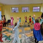 W dniu 13 lutego w naszej szkole odbył się bal karnawałowy dla uczniów klasy 1. Tego dnia sala lekcyjna zamieniła się w prawdziwą salę balową pełną kolorów, muzyki i radości. Dzieci przyszły w przepięknych przebraniach. Wśród uczestników można było spotkać księżniczki, superbohaterów, piłkarzy, jednorożce, zwierzątka oraz wiele innych bajkowych postaci. Każdy strój był wyjątkowy i przygotowany z ogromnym zaangażowaniem. Podczas balu nie zabrakło wspólnych tańców, zabaw oraz konkursów. Uczniowie z wielką radością uczestniczyli w przygotowanych atrakcjach, a na ich twarzach przez cały czas gościł uśmiech. Była to doskonała okazja do integracji, wspólnej zabawy i rozwijania dziecięcej wyobraźni. Bal karnawałowy w klasie 1 na długo pozostanie w pamięci uczniów jako dzień pełen radości, śmiechu i wspaniałej zabawy.