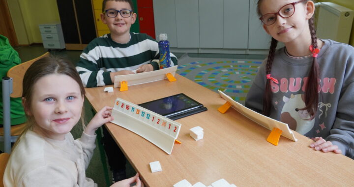 W marcu, w ramach programu edukacyjnego Fundacji Akademia Rummikub, otrzymaliśmy jeden zestaw tej popularnej gry. Dzięki temu mogliśmy rozpocząć testowanie różnych wariantów rozgrywki, w tym nowych typów jokerów, które wprowadziły dodatkowe emocje i urozmaiciły grę. Wśród nich znalazły się: Podwójny Joker, Lustrzany Joker oraz Joker Zmiany Koloru. Nowe jokery sprawiły, że rozgrywki stały się jeszcze bardziej dynamiczne i wymagające, dostarczając uczestnikom wielu pozytywnych emocji oraz zachęcając do kreatywnego myślenia.