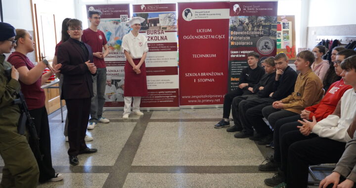 Spotkanie z delegacją uczniów z Technikum i Liceum z Pniew było bardzo ciekawym i wartościowym wydarzeniem. Starsi uczniowie opowiadali o kierunkach kształcenia, zawodach, które można zdobyć, oraz o specyfice swoich placówek. Starali się zachęcić młodszych kolegów do wyboru kierunków, dzieląc się własnymi doświadczeniami. Prezentacja miała formę wywiadu, co sprawiło, że była bardziej dynamiczna i interesująca. Uczniowie zadawali pytania i uzyskiwali konkretne odpowiedzi. Dodatkowo zaprezentowano film przedstawiający życie szkoły, zajęcia oraz atmosferę panującą w placówkach. Dzięki temu uczestnicy spotkania mogli lepiej wyobrazić sobie naukę w technikum i liceum oraz świadomiej podjąć decyzję o dalszej edukacji.